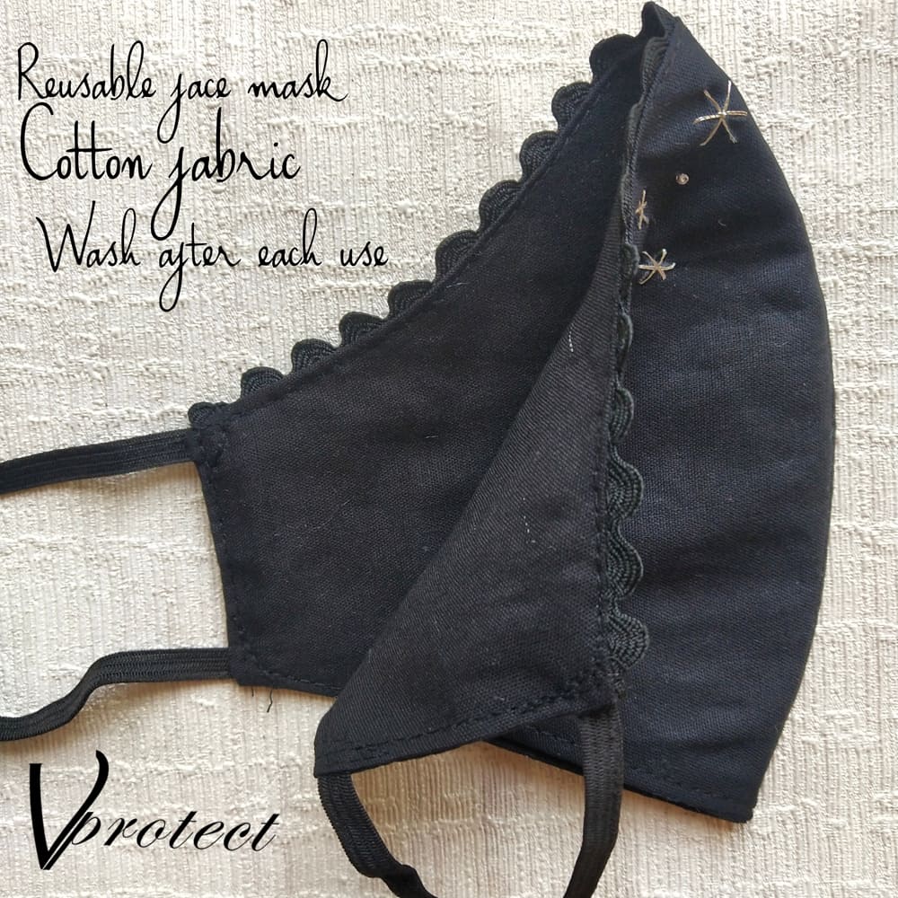 • Reusable face mask with 2 layers of cotton fabric