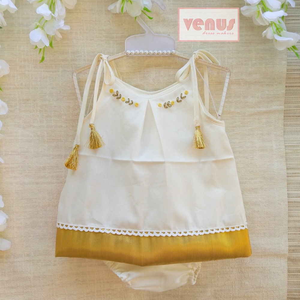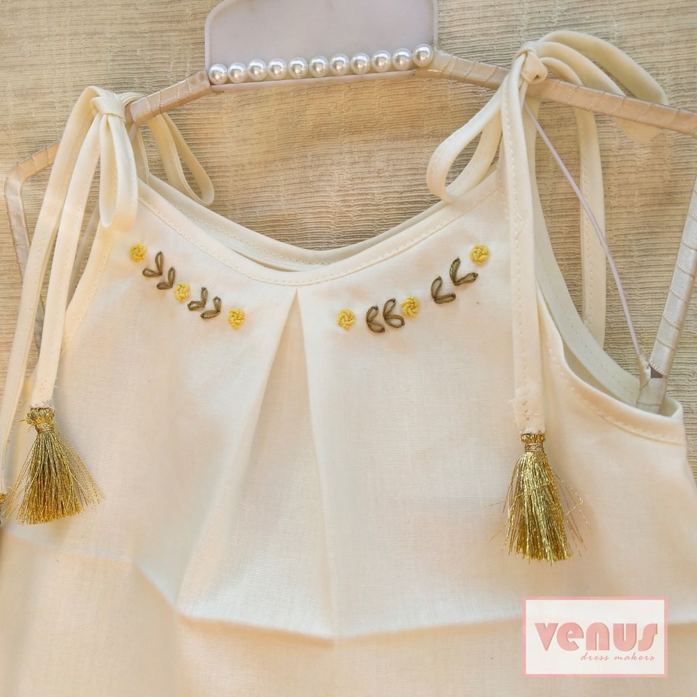 - Cream color cotton dress with small hand embroidery on neck