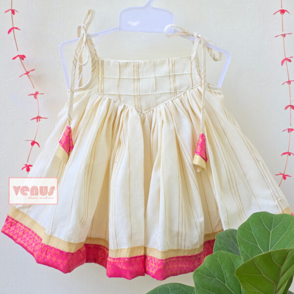 Little Blessing — In soft cream and tender stitches, this hand-embroidered cotton kettu udupu celebrates your little one’s first ceremony — a name whispered, a blessing embraced, a memory forever.