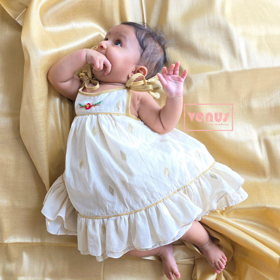 A timeless piece crafted for your little one’s most special moments. Designed in a soft, breathable fabric with delicate detailing, this outfit brings together comfort and charm effortlessly. Its gentle golden hue and graceful silhouette make it perfect for celebrations, capturing the innocence and beauty of childhood in every stitch.