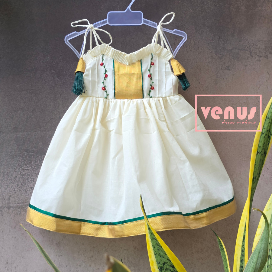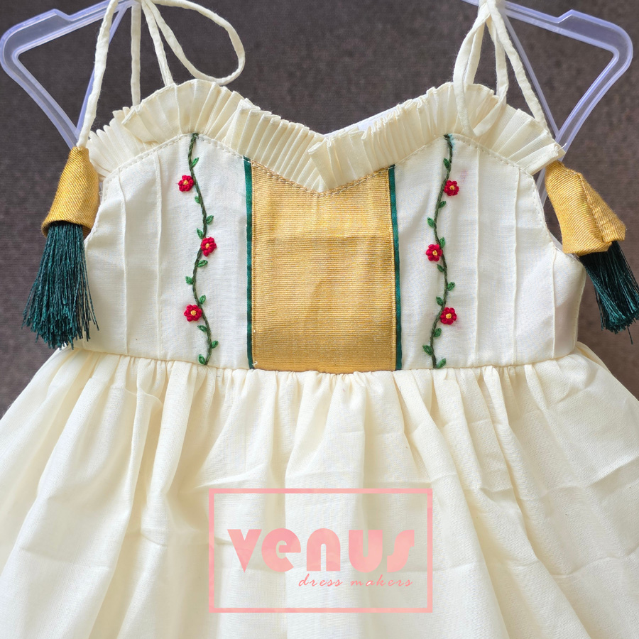 “Radiate timeless elegance in this stunning cream color Kettu Udupu, adorned with intricate red hand embroidery. Perfect for celebrations, naming ceremony, festival,….etc. This ethnic wear beautifully combines cultural heritage with modern allure.”