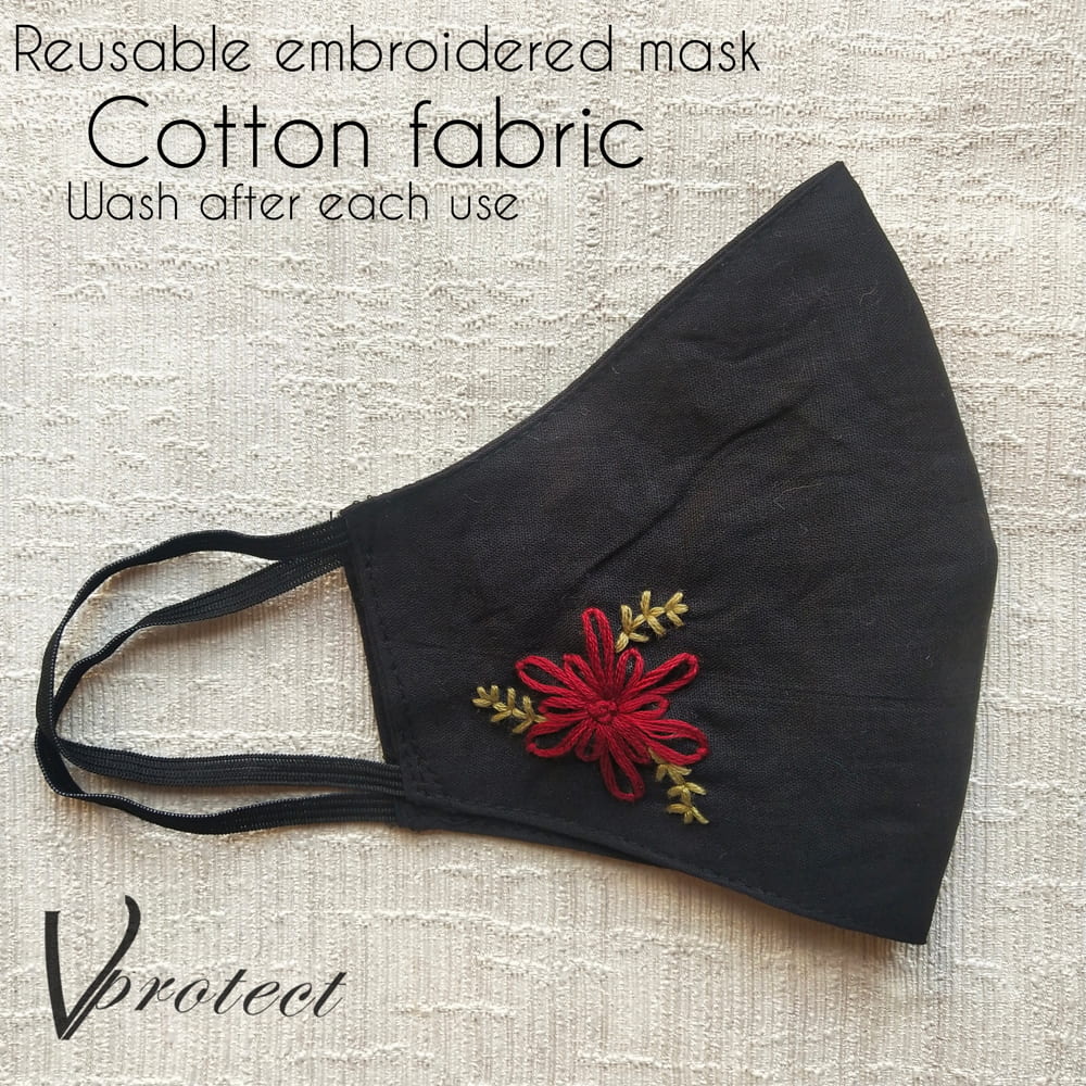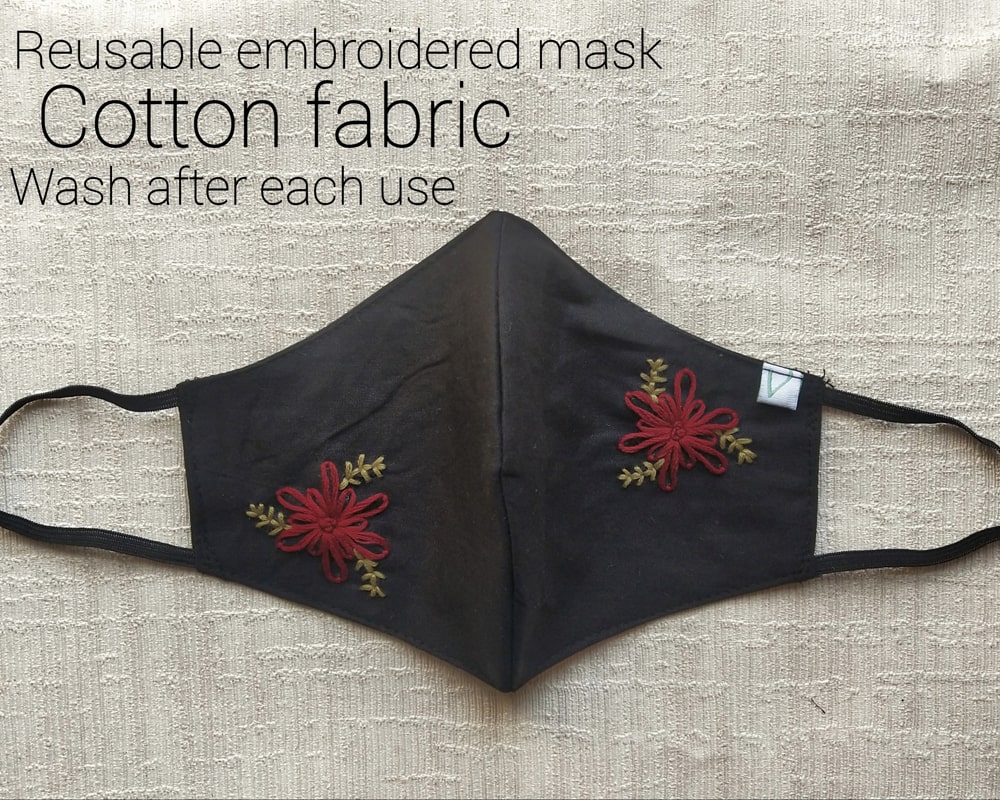 - Hand Embroidered face mask with 2 layers of cotton fabric