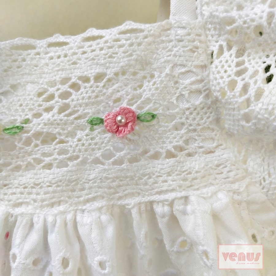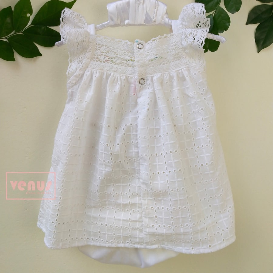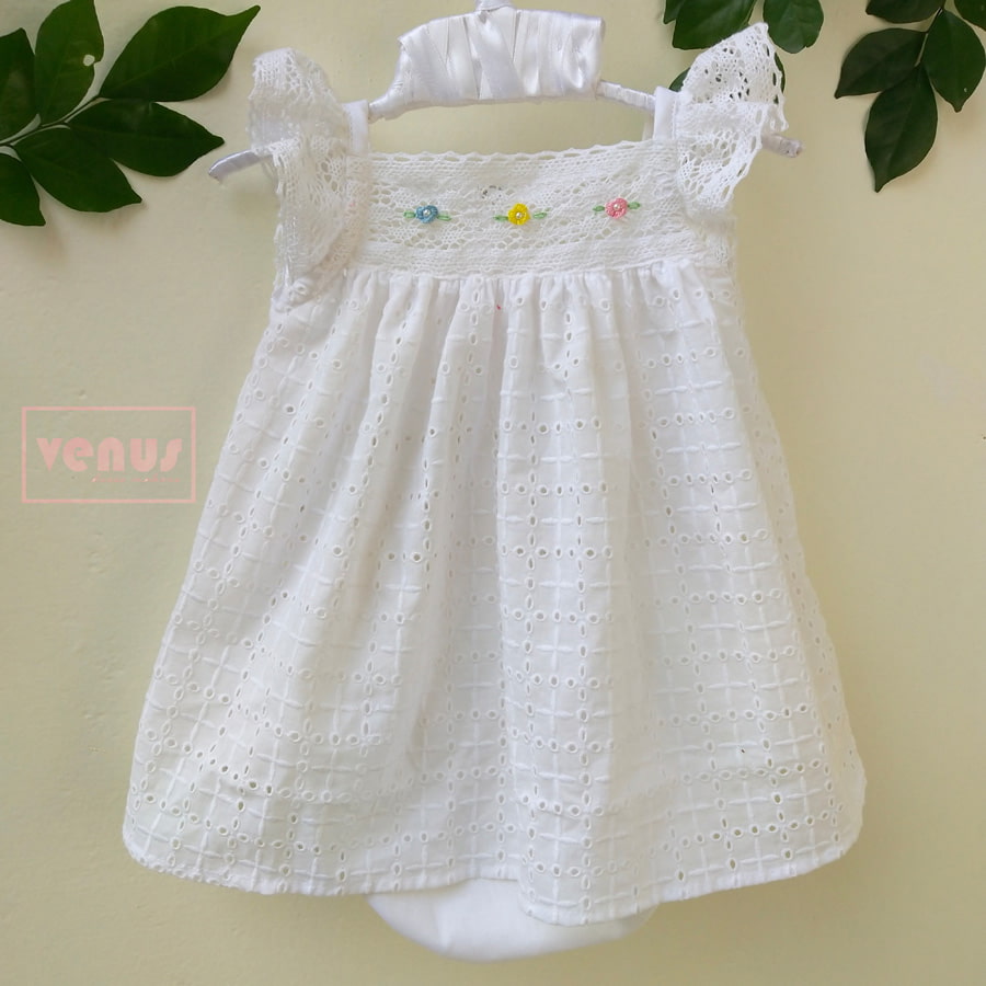 white Cotton Hakoba dress for baby girls.