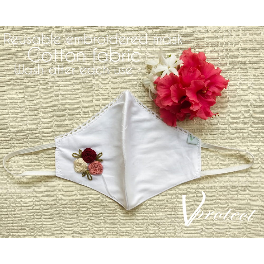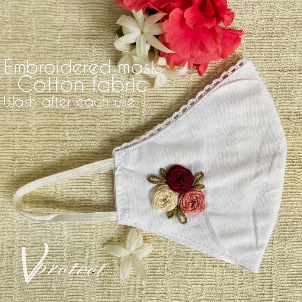 • Reusable  2 layer cotton mask with hand embroidery