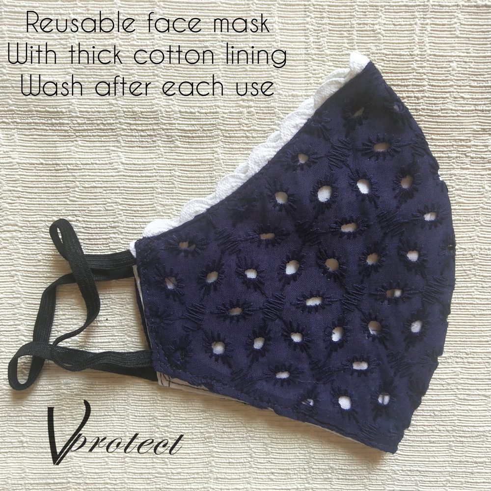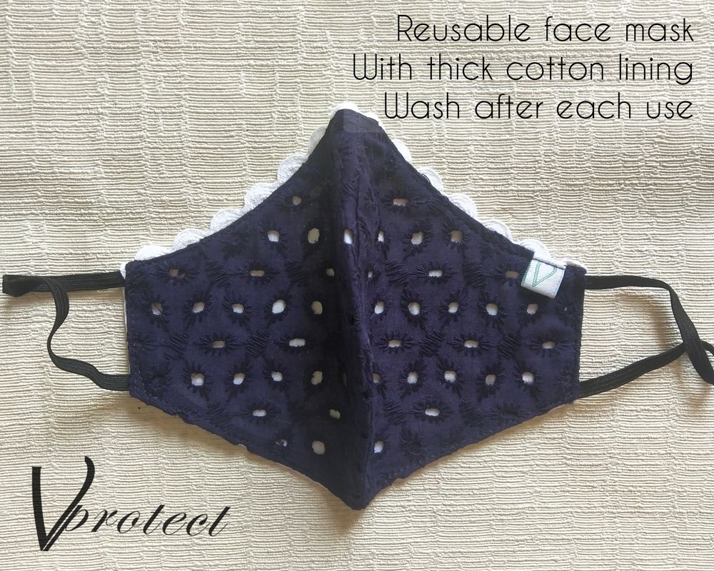 - Cut work Navy Blue Hakoba fabric with thick cotton lining